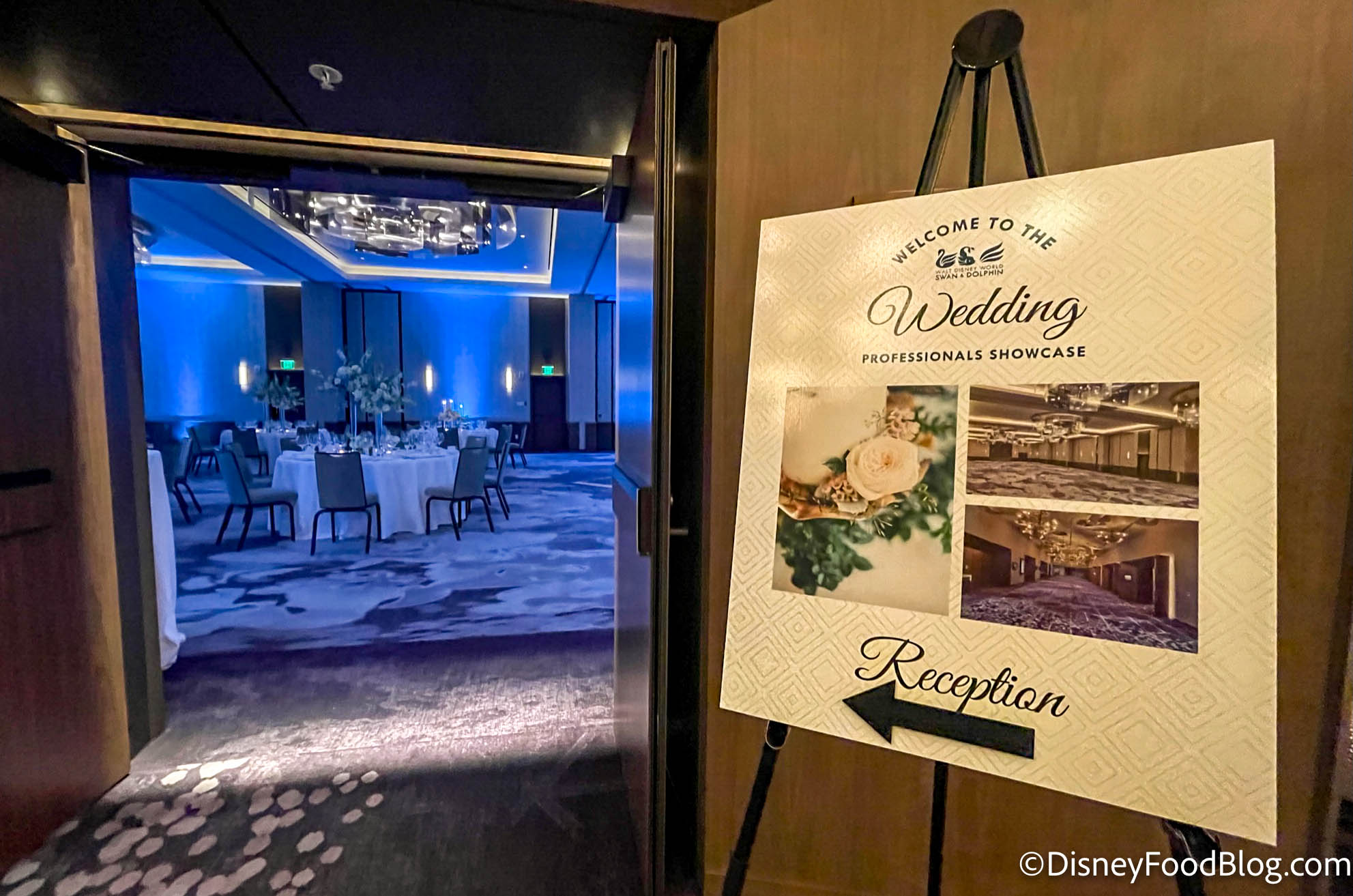 Disclosure: In nearly all circumstances, Disney Food Blog writers and photographers pay full price for their own travel, hotel, food, beverage, and event tickets. We do this because it’s important to us as journalists to ensure not only that we give you unbiased opinions, but also that you can trust us to do so since we’re paying our own way. On rare occasions, when we are invited by a company to attend a preview as media, and when we choose to accept that invitation, we will always make you, our readers, aware of that situation. Today, we were invited by Disney World to attend their media preview of Swan Reserve Wedding Professionals Showcase. Note that when we attend events as media we are 1) Not required to review that event/food on any of our channels, and 2) Not required to review that event/food favorably. You can always count on DFB to give you a 100% unbiased and honest review of any event that we attend, food that we eat, or beverage that we drink. You can see more in our Disclosure Policy. Thank you for reading. — AJ