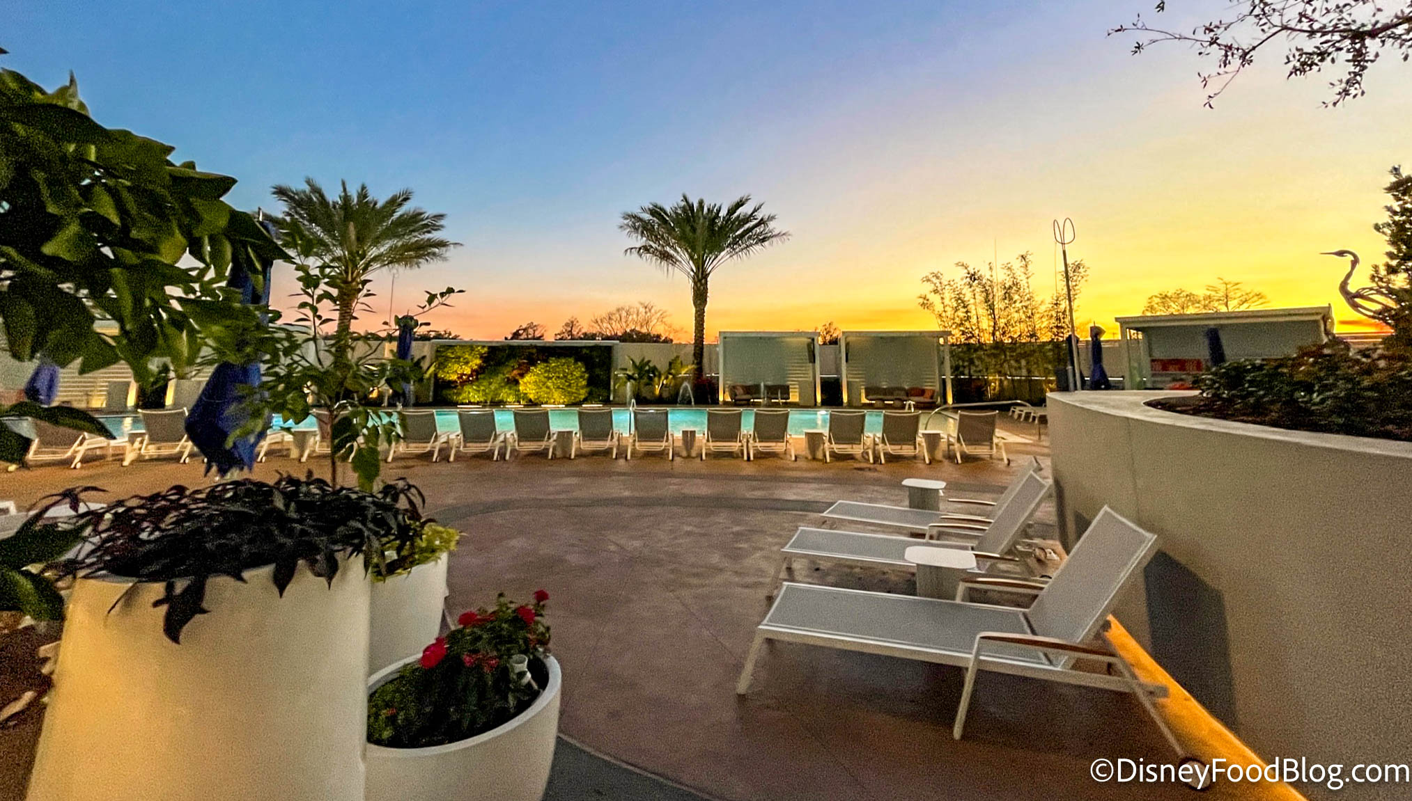 We saw the outdoor area near the pool, which was gorgeous with the sunset.