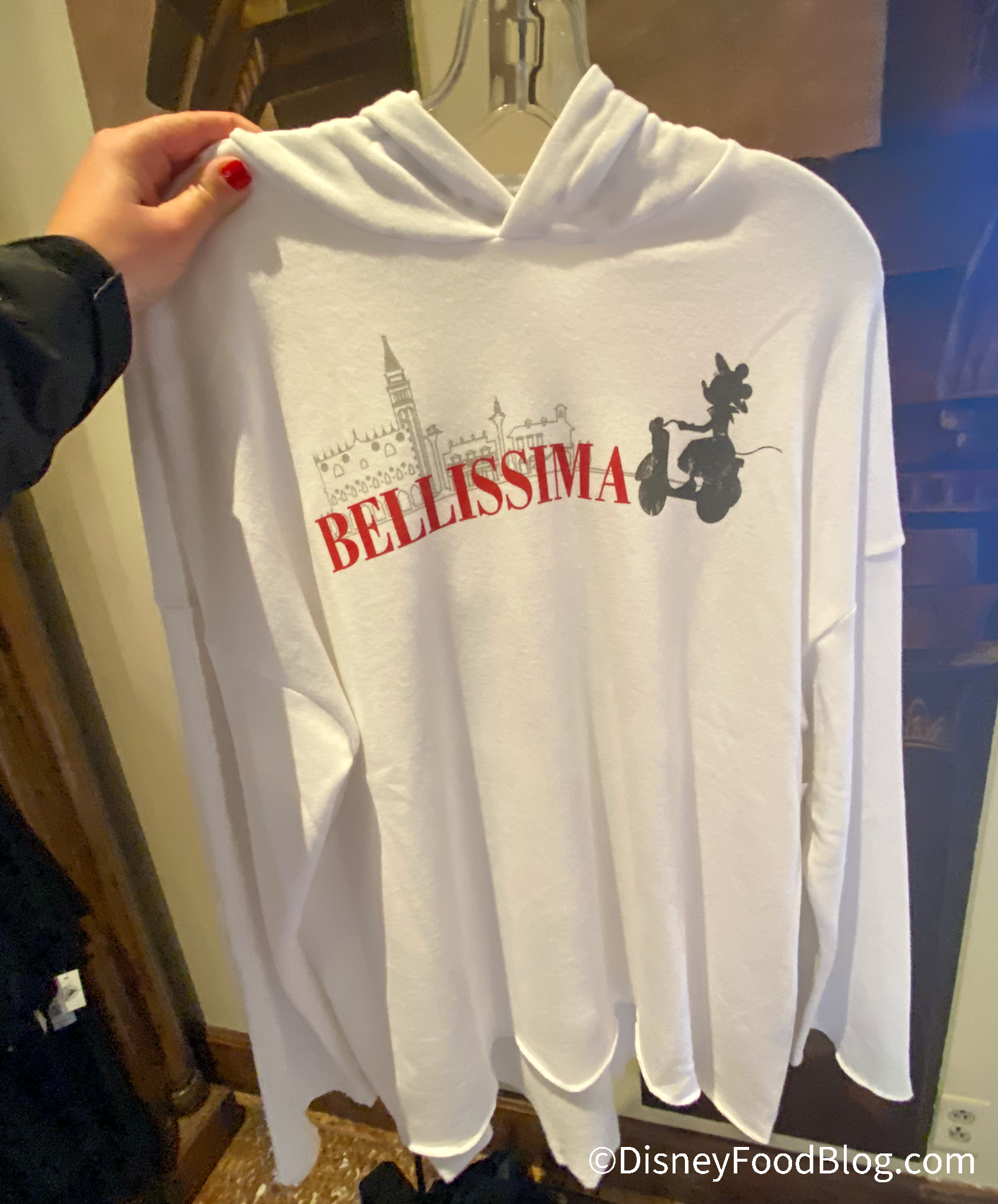 In the Italy Pavilion, we spotted a new Minnie Mouse Hoodie that is “Bellissima.”