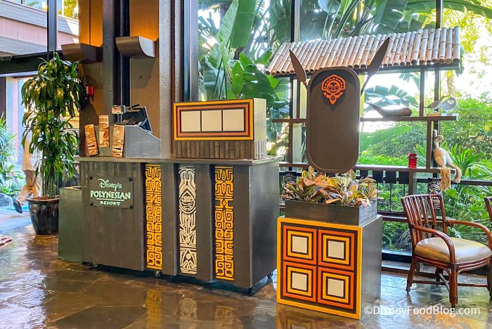 Inside the Polynesian’s lobby, we noticed a new setup! This little kiosk isn’t typically here, so we did some investigating.