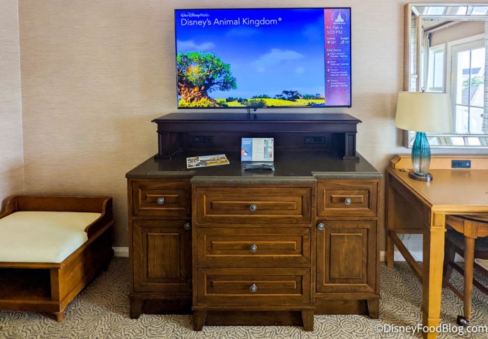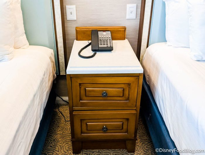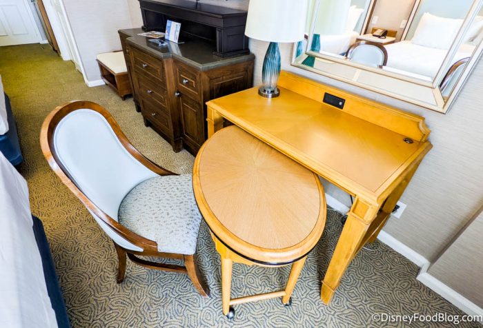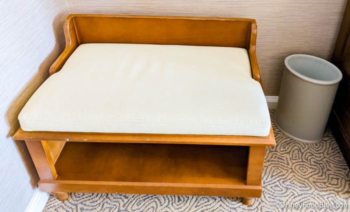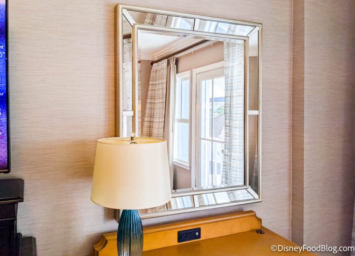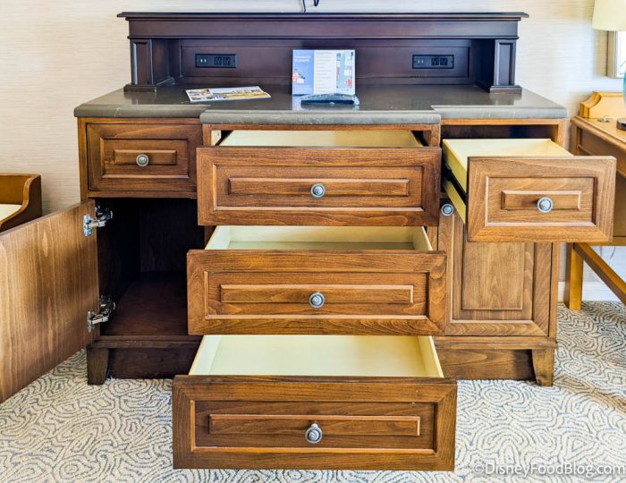 The dresser has several drawers and shelves for all your storage needs. So if you like to fully unpack during your Disney World trips (it makes it feel more like home for a few days!) you’ll have plenty of space to do that here.