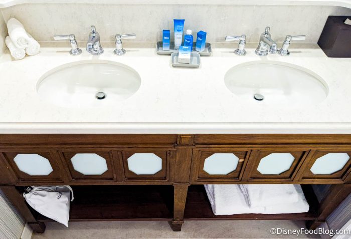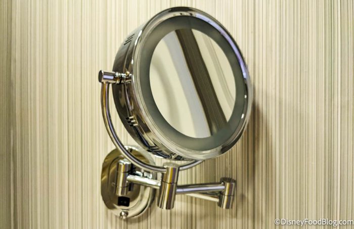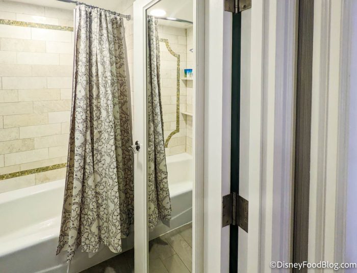 The door for this area has a long mirror on the back (the vanity side) so you can check out your best park outfits before you leave for the day.