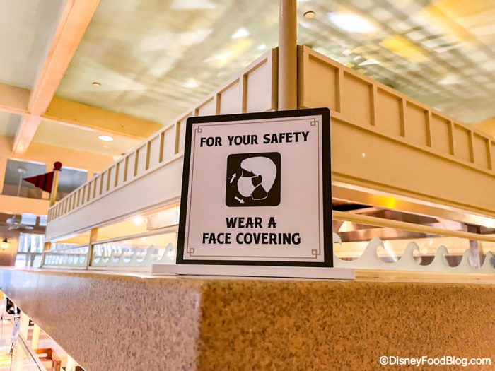 Remember, you have to wear a face mask everywhere indoors in Disney World, so that includes while you’re up at the buffet grabbing food.