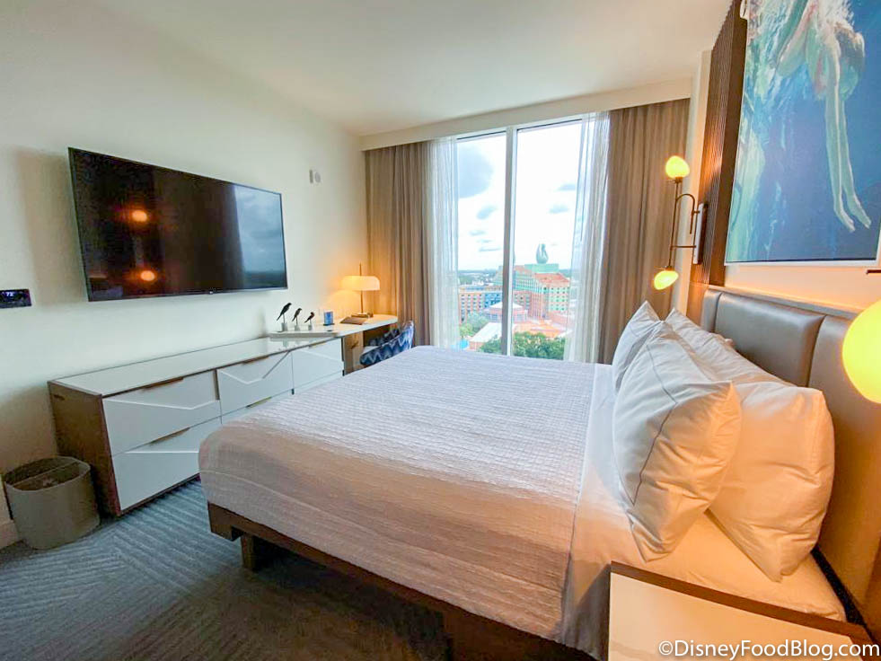 It’s a very GRAND hotel and when it comes to location, it can’t be beat. It’s within walking distance of EPCOT, as well as the other EPCOT-area hotels and Disney’s BoardWalk. It’s a bit of a longer walk, but you can also walk from here to Disney’s Hollywood Studios. The rooms also deliver on views since EVERY room has floor-to-ceiling windows!