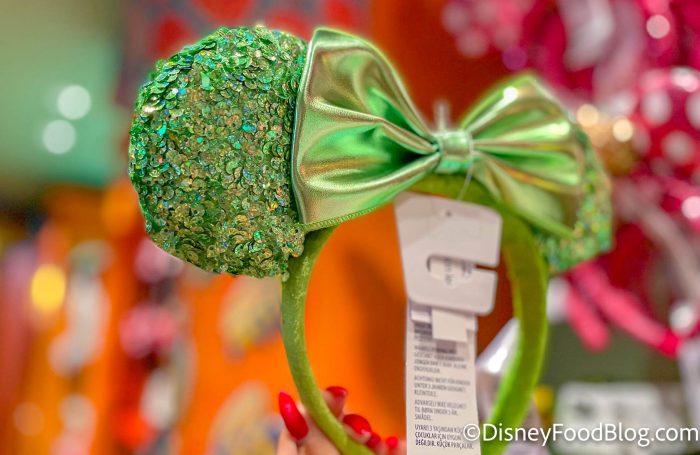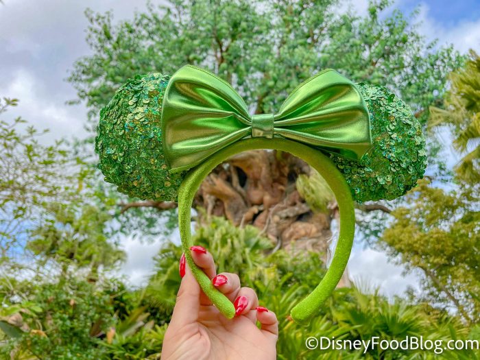Today, we found these brand-new beauties inside Island Mercantile at Disney’s Animal Kingdom Theme Park. We’ve seen green ears in the past, but none quite as vibrant and bold as these — perfect for St. Patrick’s Day!