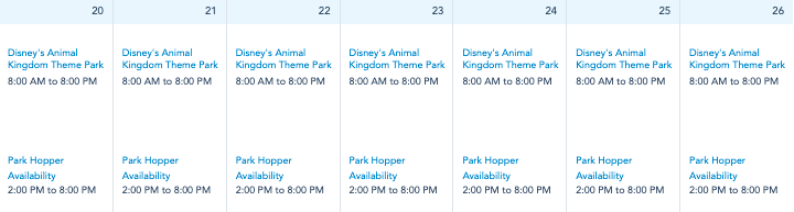 Disney’s Animal Kingdom will be open from 8AM until 8PM every day this upcoming week!