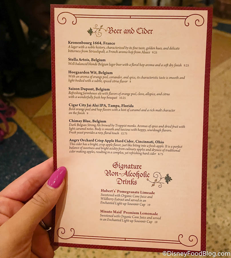 While you’re eating, you might spot the Beast saying “hi” from a distance! Note, however, that this isn’t a traditional character dining restaurant or even a modified version. The Beast doesn’t really come by the tables individually to pause for (distanced) photos. Instead, from what we’ve experienced, he traditionally just walks throughout the space, waving and bowing, but doesn’t really stop too much.