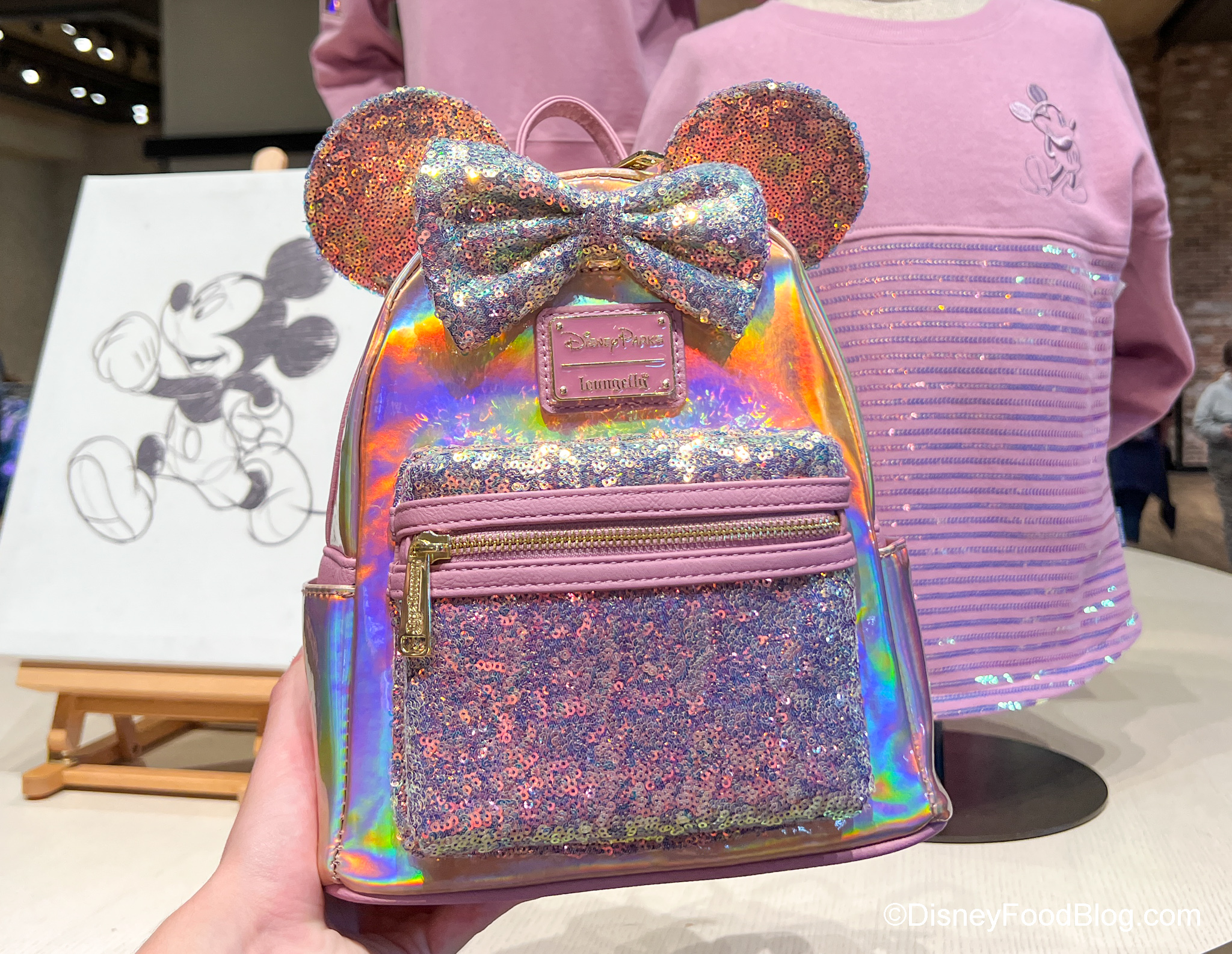 Okay, we are OBSESSED with how this Iridescent Loungefly Mini Backpack catches the light. This bag is $110.
