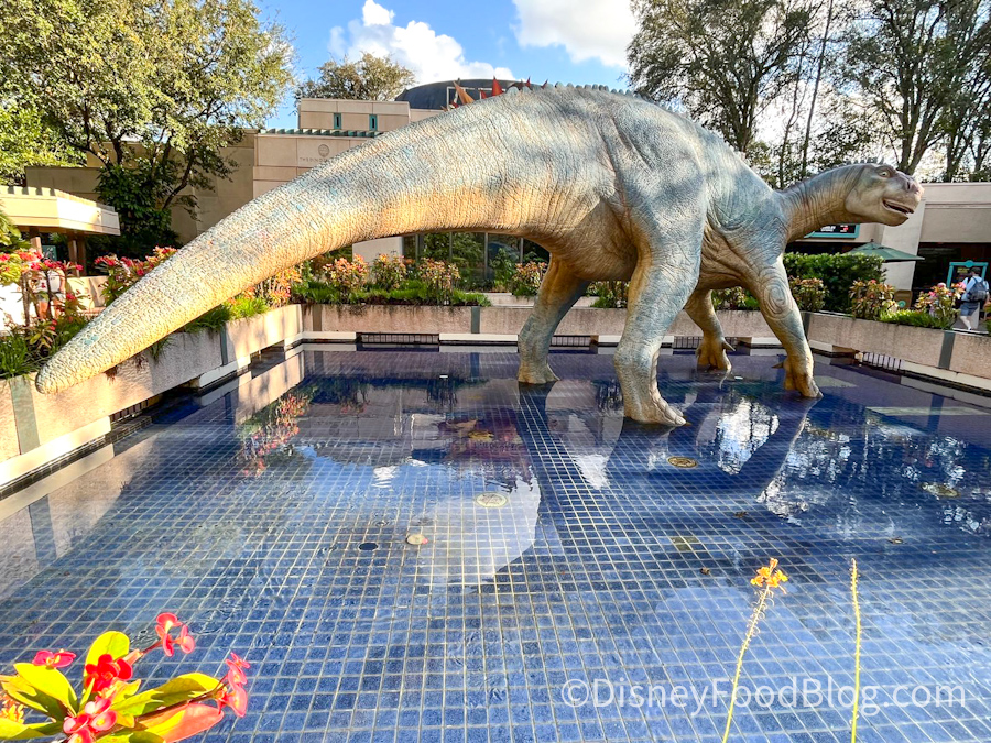 Last week, we were so happy to report that Aladar had received a new coat of paint in front of Dinosaur! Well now we’ve got another update — the area underneath Aladar has been refilled with water!