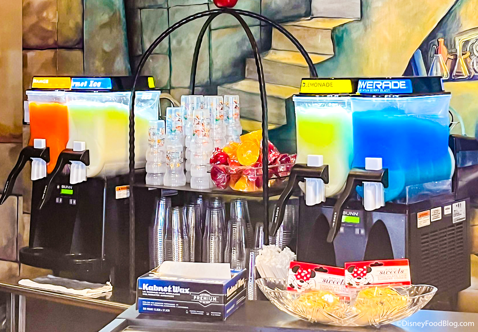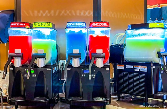 We also saw these over at Zuri’s Sweets Shop in Animal Kingdom. Over here, you can add alcohol to your glacier, but you can’t get an alcoholic glacier in the souvenir cup. Disney won’t put alcohol in a cup with characters on it — so, you’ll have to be okay with a plain ol’ cup.