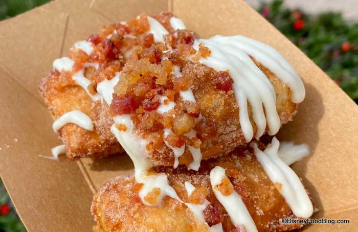 Returning to Sunshine Griddle are the Fried Cinnamon Roll Bites with cream cheese frosting and candied bacon!