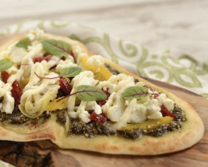 At Tangierine Café: Flavors of the Medina we’ll get a new Mediterranean Flatbread with za’atar, artichokes, olives, mozzarella, and feta cheese!