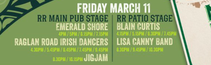 Here’s the full line-up for the week’s entertainment. Friday, March 11th: