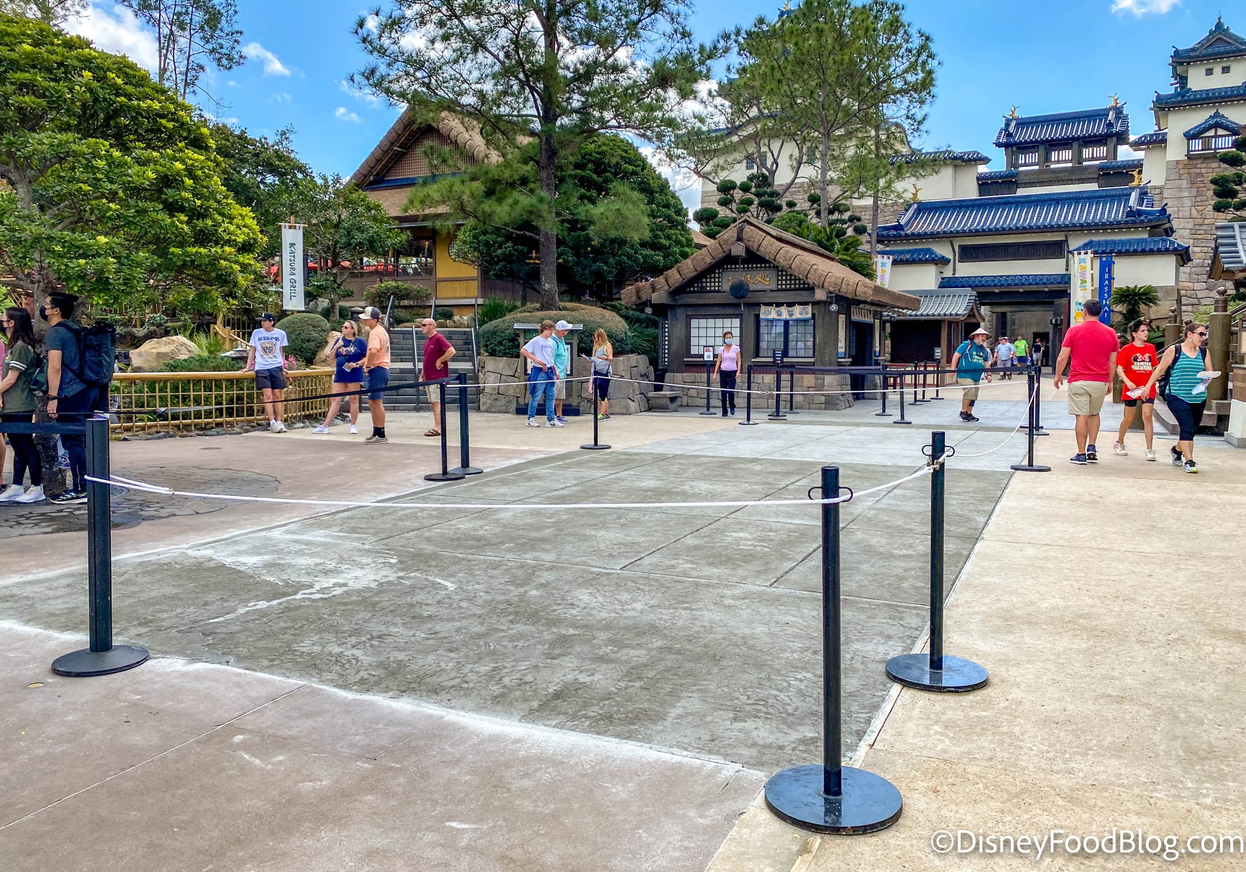In the Japan pavilion, there was lots of new pavement construction. Ropes prevented guests from stepping on the new pavement.
