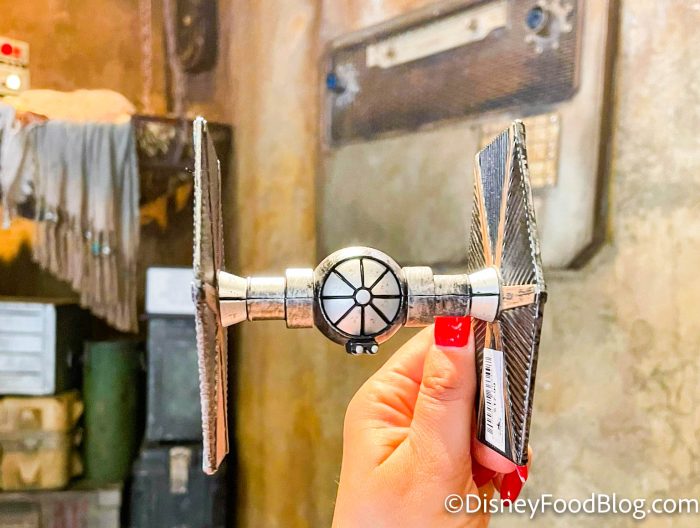 When we stopped by to visit a galaxy far, far away, we found some new items in the shops. Over at The Market, there were new figurines inside Toydarian Toymakers. The first is a tie fighter…