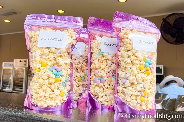 Let’s start with a little snack update! For quite some time, we’ve had the holiday popcorn mix available at all the popcorn stands around Hollywood Studios. But this week, the Springtime Popcorn has finally returned!