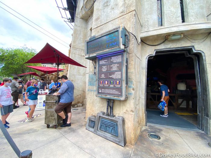 We didn’t even have to go inside when we arrived at Oga’s — a Cast Member outside was able to give us the coaster we needed. If you’re looking for a full review of this Cantina, though, don’t worry — we’ve got one right here.