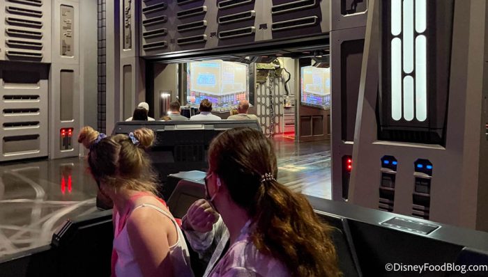 Once we arrived, we started with a quick ride on Smugglers Run, where we go to use the first of our Lightning Lane passes as esteemed guests of the Halcyon. Cast Members told us later that Hondo (the character host of this attraction) is supposed to recognize Starcruiser guests, but he didn’t seem to recognize us when we rode. This may be a glitch that is worked out for later excursions!