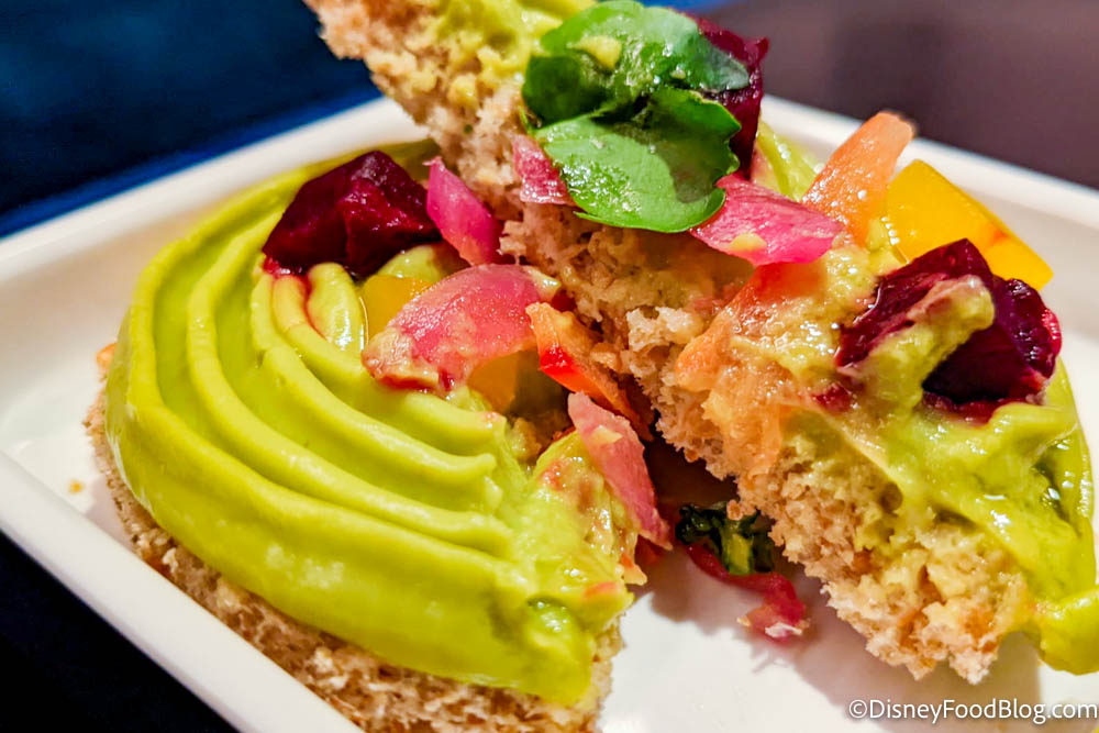 2022-wdw-disney world-new star wars hotel-star wars galactic starcruiser-media event preview-breakfast-food-buffet-crown of corellia dining room-green pearberry toast-cut-2 By Sara McOmber Leave a Comment