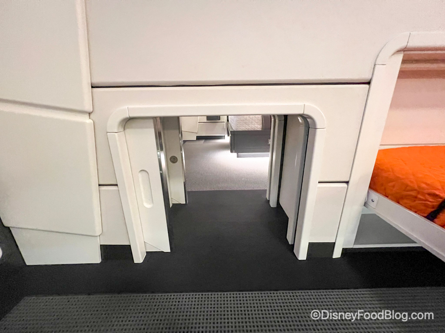 One of the most fun features in the suite is the little crawl space between the two main rooms. If you slide open the doors next to the pull-down beds from both sides, you can crawl back and forth between the bedroom and the living area. How cool!