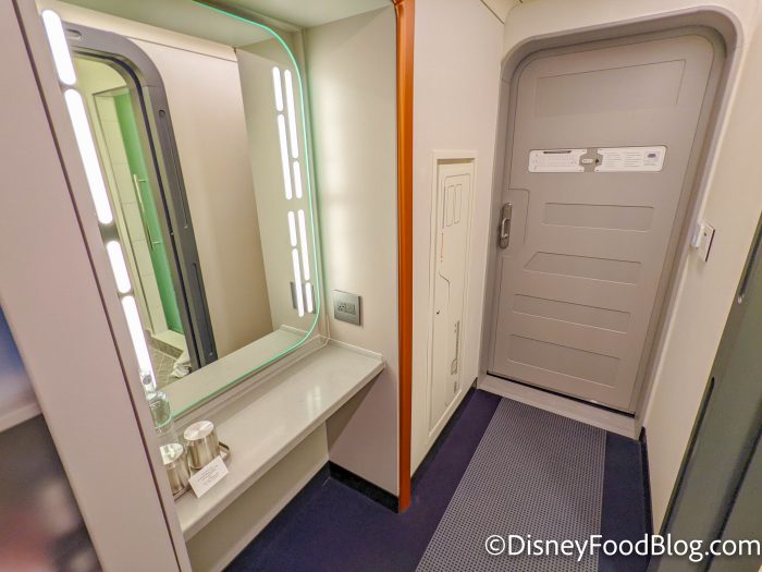 When you first walk down the hallways to the rooms, you’ll find that the doors don’t look exactly like what you’ve come to expect from “normal” hotel room doors. Here, you’ll need to scan your MagicBand (also called a databand) at an entry point, then slide the door open to go inside.