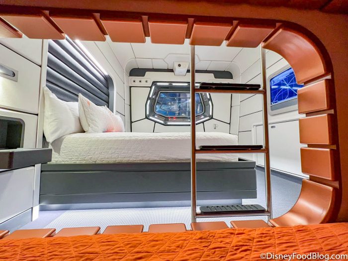 But those aren’t the only room types that the Star Wars: Galactic Starcruiser has to offer! For those who want to go BIG, you can stay in the 8-person Grand Captain Suite. It has two queen beds, two bunk beds, and two pull-down beds spread across two bedrooms and a living area.