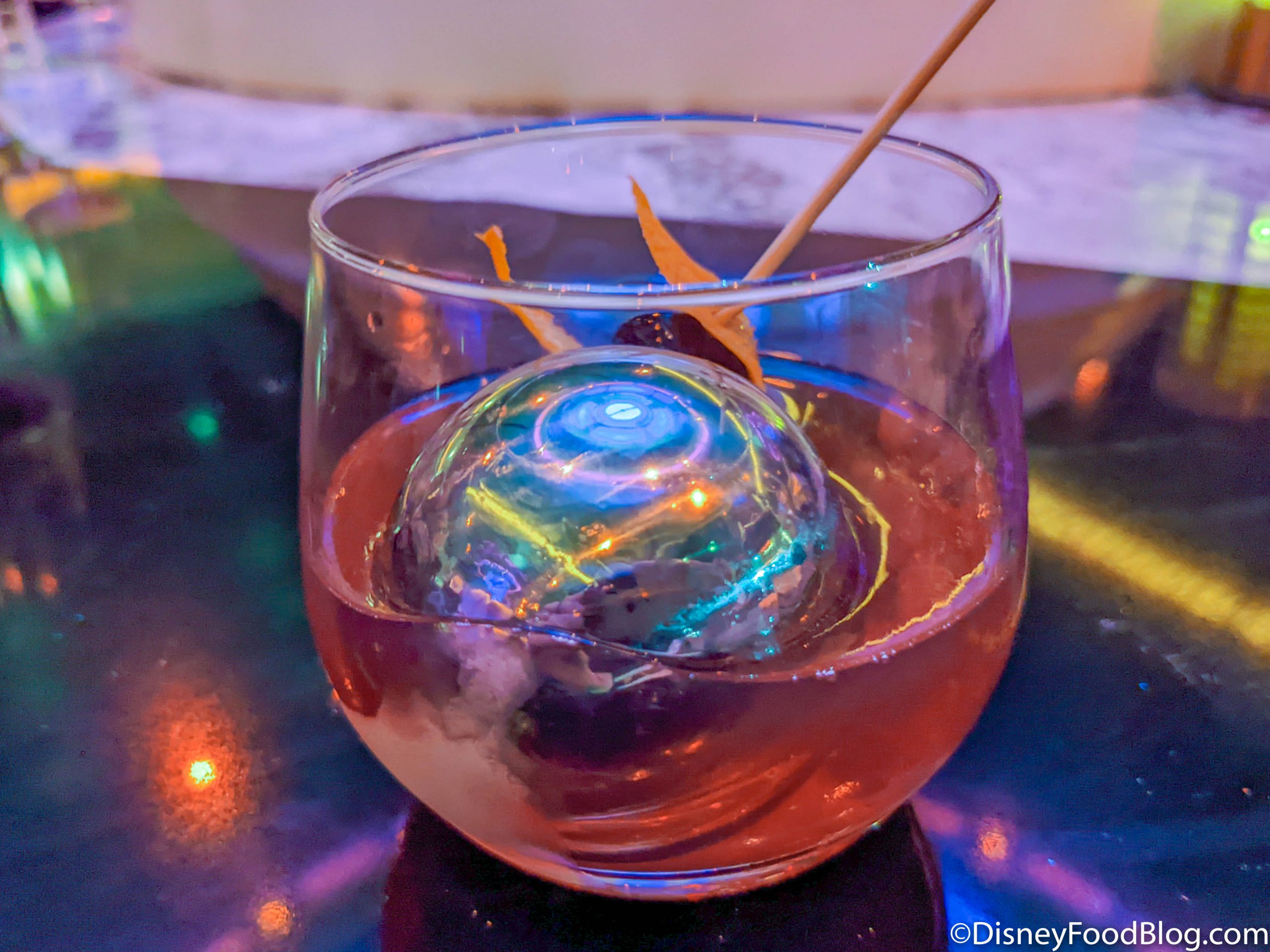 Overall, the Pod Chaser was a bit more on the sweeter side compared to other drinks we had, but we did taste the alcohol. The drink has a chilled metallic sphere in it to help keep the drink cold, and the look of that really made the drink more fun and interesting. It was a solid Old Fashioned, but nothing terribly unique.