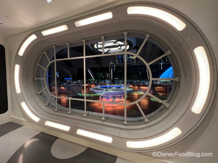 The theming here is meant to be “inspired by the Halcyon starcruiser’s historic voyages throughout the galaxy.” The vibe is starcruiser modern (we all know what that looks like, right? cool.) and there are some great pops of color. But there is also a darker, “cooler” vibe here than you’ll find in other parts of the ship.