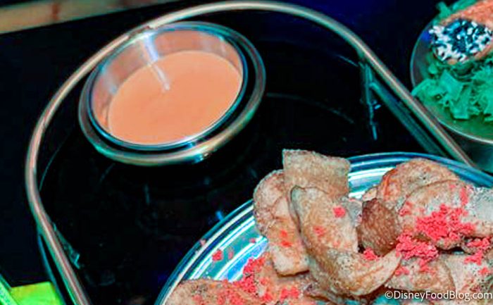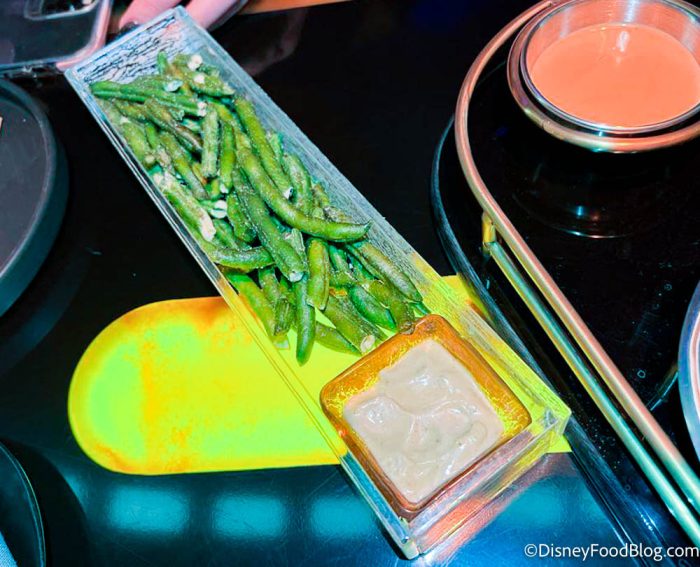 But we can’t forget about the Crispy-dried Green Beans! These are served with a creamy green Pearberry dip. These were pretty good! Note that in the Star Wars World, Pearberry is code for avocado. The avocado gave it the dip a nice, creamy texture, which was great. And overall that dip was pretty mild.