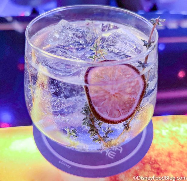 During our return trip to the Halcyon (on its maiden voyage) we also tried the Nysillin and Bubbles, which is an intergalactic take on a Gin and Tonic. The drink is made with gin, cucumber, lime and thyme and is priced at $16.