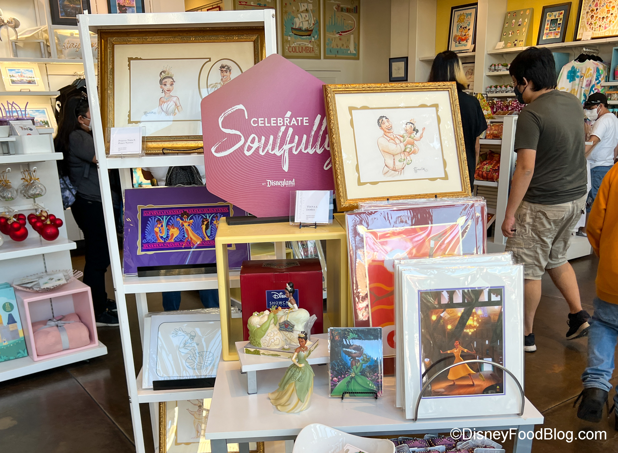 The display had prints, pins, and more Tiana merchandise available.