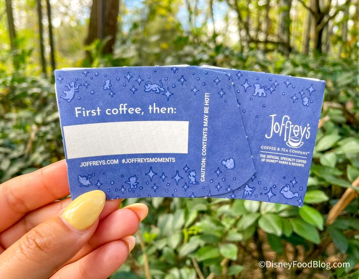 Well, Joffrey’s Coffee has its own take on this same idea with the new Caffeinated Celebration event! At select Joffrey’s locations around Disney World, guests can personalize their coffee sleeve by sharing their next Disney activity right on their cup!