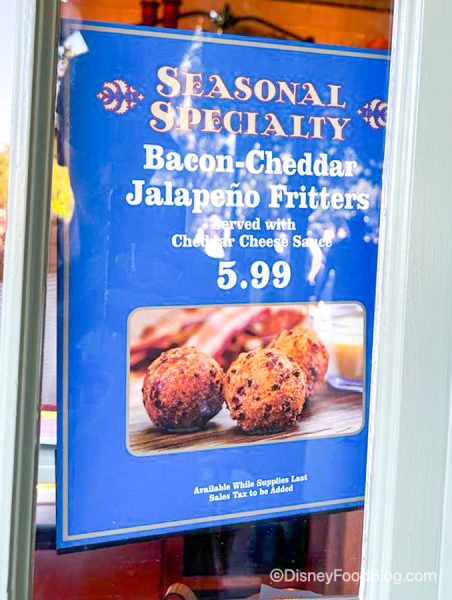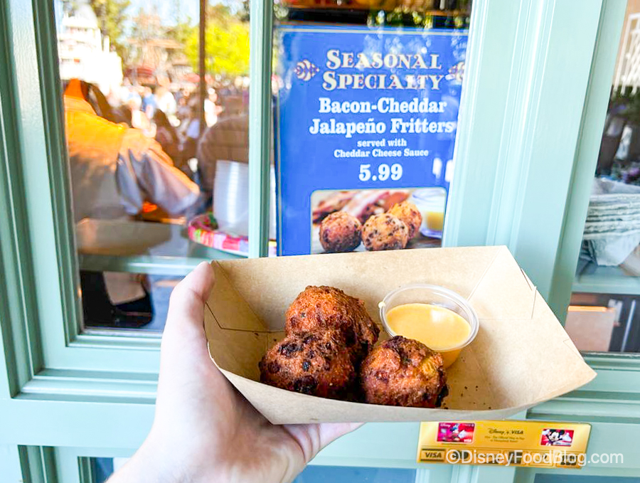 Bacon 🥓 Cheddar 🧀 Jalapeño 🌶 Fritters $5.99 pic.twitter.com/z719NlvGcl— Disney Food Blog (@DisneyFoodBlog) February 28, 2022