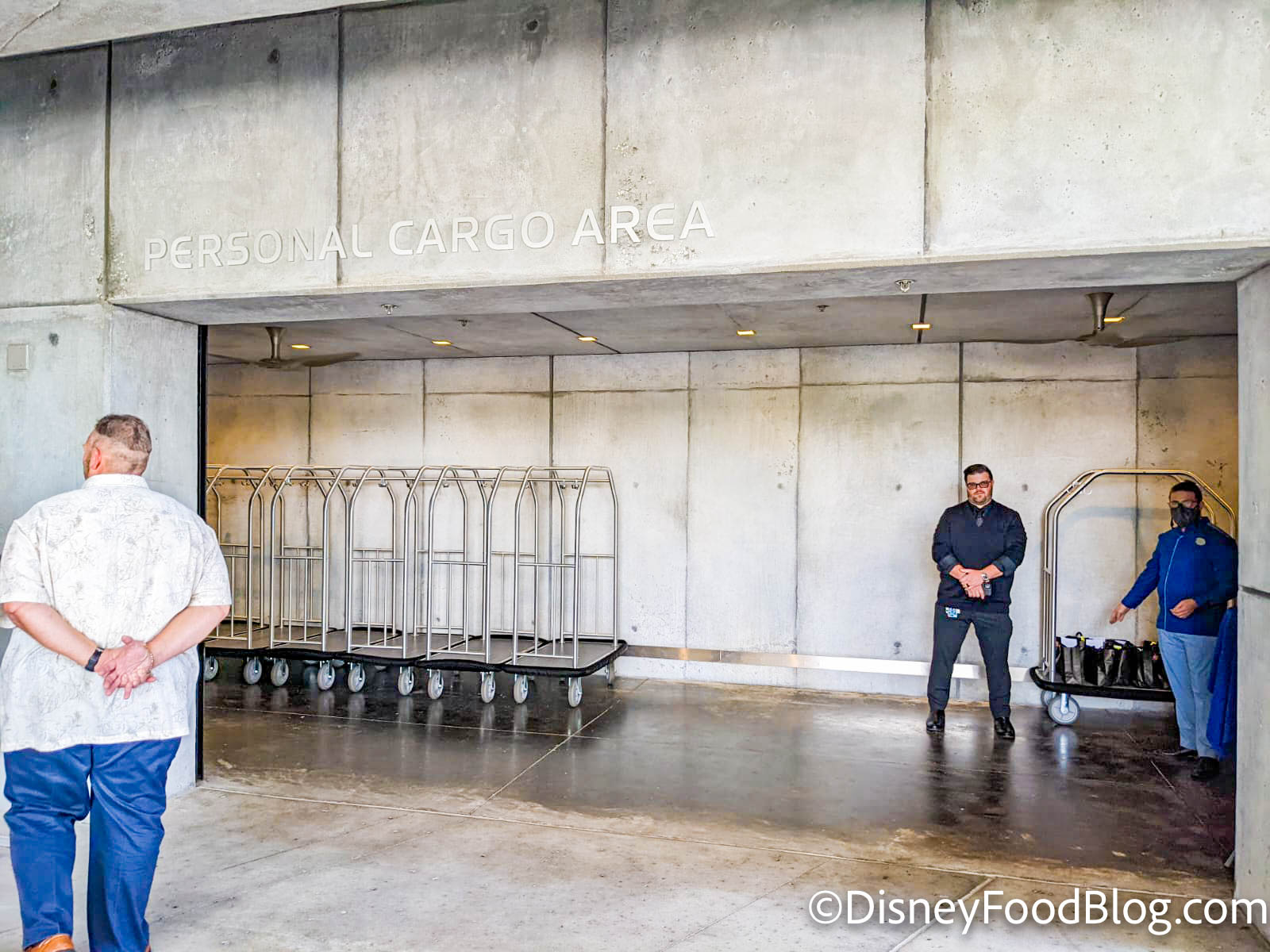 Cast Members are in costume but not as specific Star Wars characters with wigs and things of that nature. Instead, you’ll generally find them in blue outfits with Cast Member name tags. As part of check-in you’ll also get to watch a video about what the difference is between a “fake” (in-story) emergency and what would happen if there were a true emergency on the ship. Then, you’ll head to a transport vehicle to make your way onto the ship!