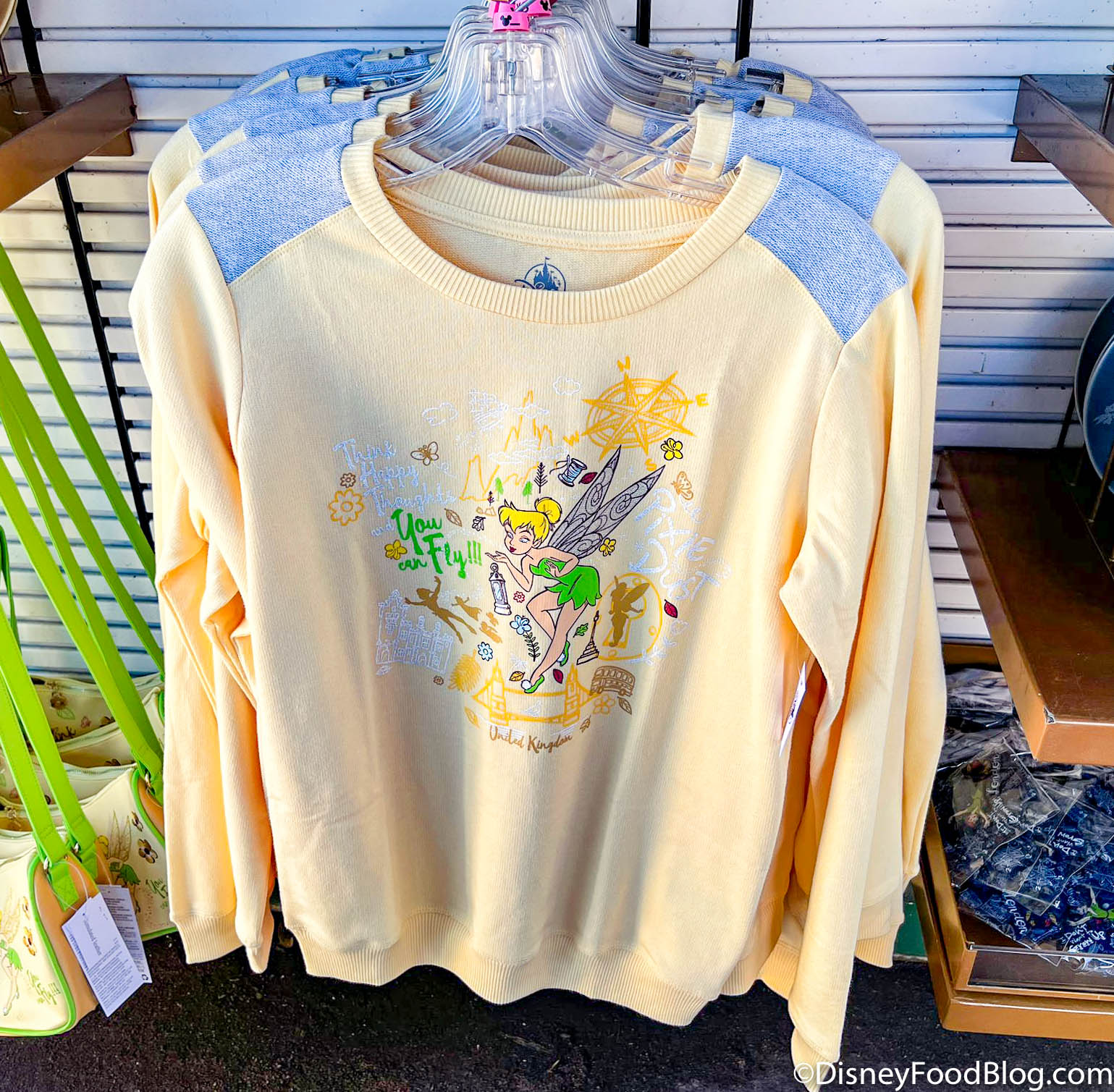 Or you can opt for the Tinker Bell sweatshirt for $49.99. The yellow sweatshirt has more of that Tinker Bell design on it with fun details from the movie.