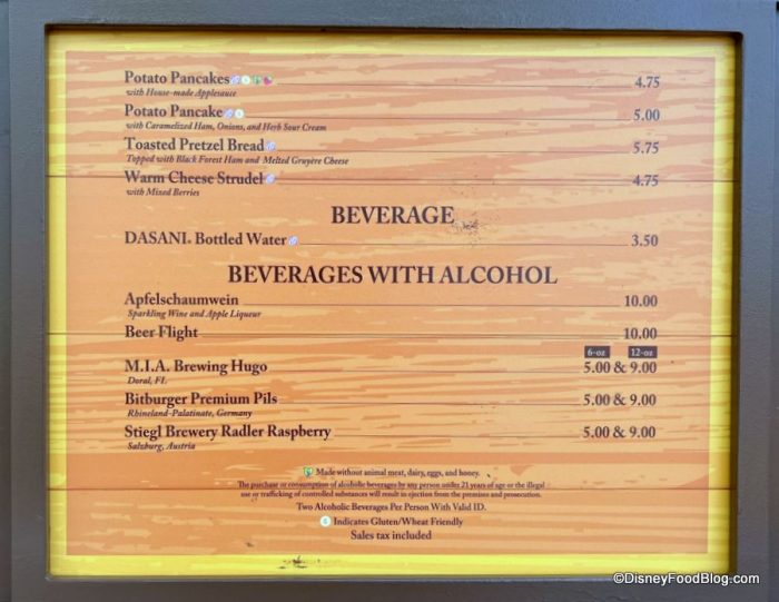 Welcome to the 2022 EPCOT Flower and Garden Festival! The Festival is officially underway and we’ve been in the park all day, checking out all the colorful topiaries, merchandise, and (of course) food booths! Now it’s time for a visit to a classic booth in the Germany pavilion. Returning booth Bauernmarkt: Farmer’s Market is an oldie but a goodie, and we’re ready to re-visit our favorite dishes that will take us far beyond the realm of chicken nuggets and fries!