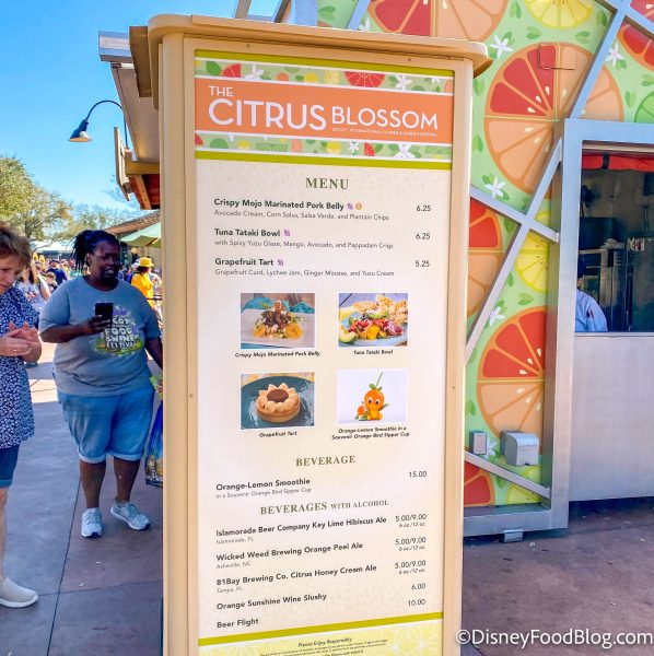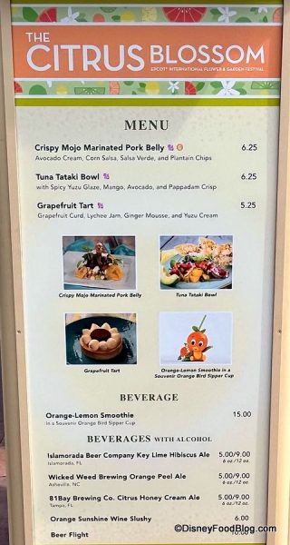 We’ve seen all of the booths at the festival before, but one booth we’ve seen at MULTIPLE festivals — The Citrus Blossom! This booth has been spotted at EPCOT’s Food and Wine Festival and even the Festival of the Holidays, so let’s see what it has to offer this year at Flower and Garden.