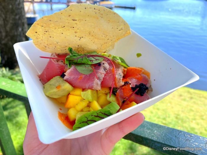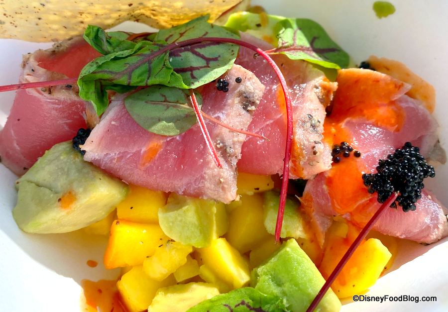 Next up, we got the returning Tuna Tataki Bowl with spicy yuzu glaze, mango, avocado, and pappadam crisp for $6.25.