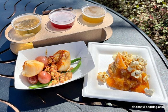 In general, this booth was a win for us again! Those scallops are so well-cooked and tasty, and we think any seafood lover would enjoy them. The cake is a great option for pickier eaters or little kids, and you don’t want to miss out on the Maple Popcorn Shake! We probably won’t get the Glutenberg Blonde Ale again, but it was the only one on the flight that disappointed us.
