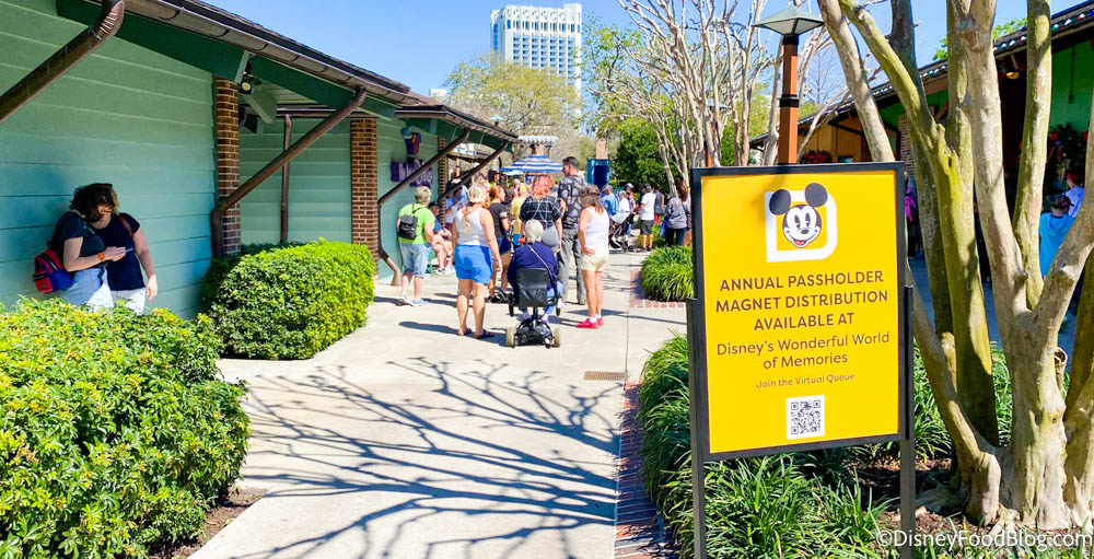 2022-disney springs-wdw-annual passholder exclusive magnet for 50th anniversary-virtual queue-physical line and ap sign By Sara McOmber Leave a Comment