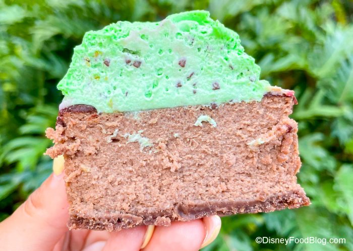 Of course, we’re trying them all. We’ve already shared our thoughts on treats like the Peanut Butter Banana Lunch Box Tart and the Strawberry Cheesecake Cannoli. Now, we’re heading over to ABC Commissary to try out a new treat there, the Mint-Chocolate Chip Cheesecake.