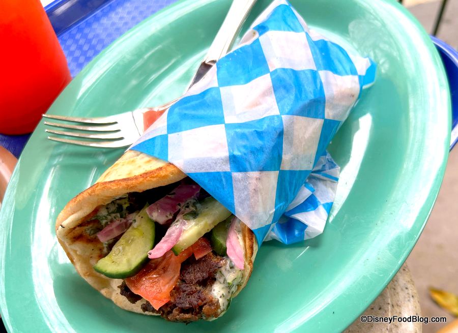 The next thing we tried was the Impossible Gyro! This has seasoned plant-based meat served in pita bread with dairy-free tzatziki, seasoned tomatoes, cucumber, and onions. The flavors in this Gyro were absolutely amazing, and the Impossible Meat actually tasted like lamb!