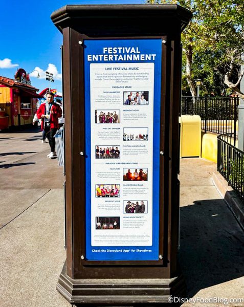 Disney confirmed that live entertainment and music would be part of the 2022 Food & Wine Festival in this park, but they didn’t release a full line-up of the artists. But now that the festival has begun, we know that some of the performances at the Palisades Stage will include The Filharmonic, Midnight Hour, Phat Cat Swinger, and The Tina Aldana Band. There will also be performances at the Paradise Garden Bandstand, including the Island Reggae Band and Urban Music Society.