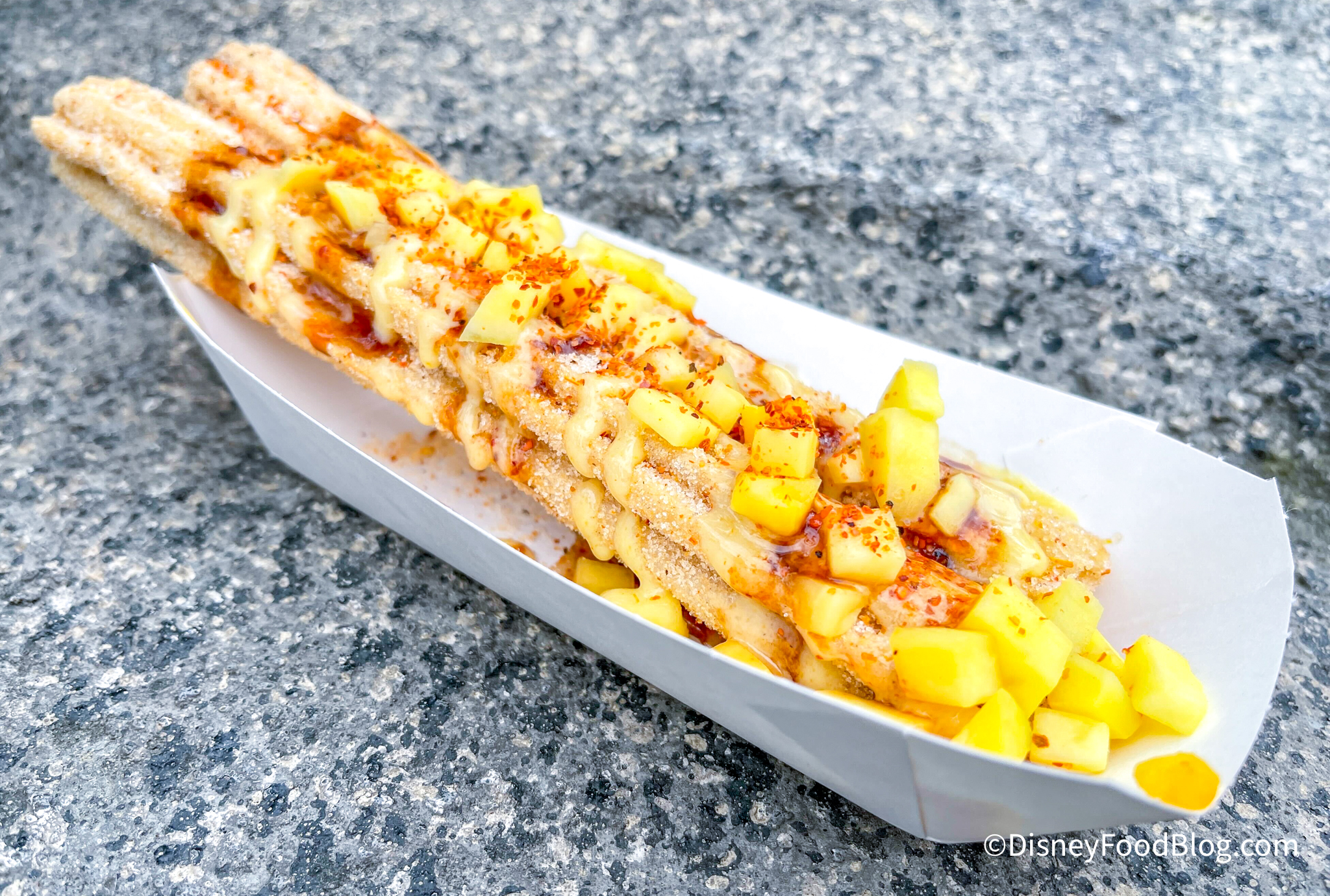 This churro had mango sauce, chili-lime sugar, and tamarind chamoy! The chili-lime sugar was super bright, and the mango chunks were a juicy addition!
