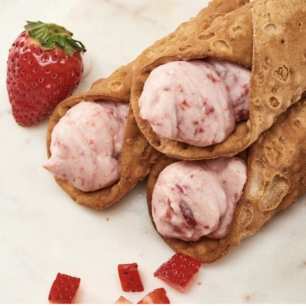 However, we’ve got much higher hopes for the Strawberry Cannoli, you can’t go wrong with a classic flavor! Announced on Instagram, Vivo il Gelato describes the Strawberry cannoli as “Sweet cream made of ricotta cheese, sugar and strawberries in our delicious, crispy pastry shell.” And do we spot fresh strawberries in that cream? YUM!