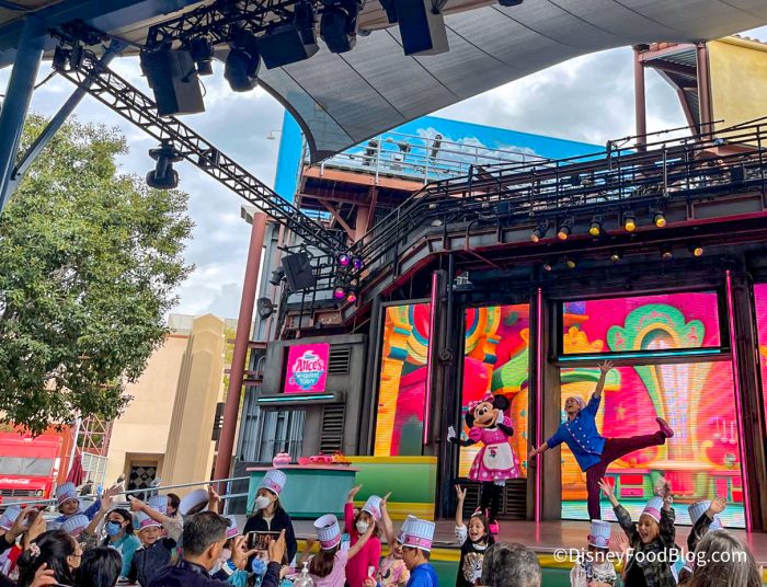 This is a cupcake decorating experience that features special guest chefs at the Hollywood Backlot Stage in Hollywood Land. Rolly Pin is the live host, and Alice, along with Princess Rosa, will be joining as well! During our visit, Chef Minnie came out to help!