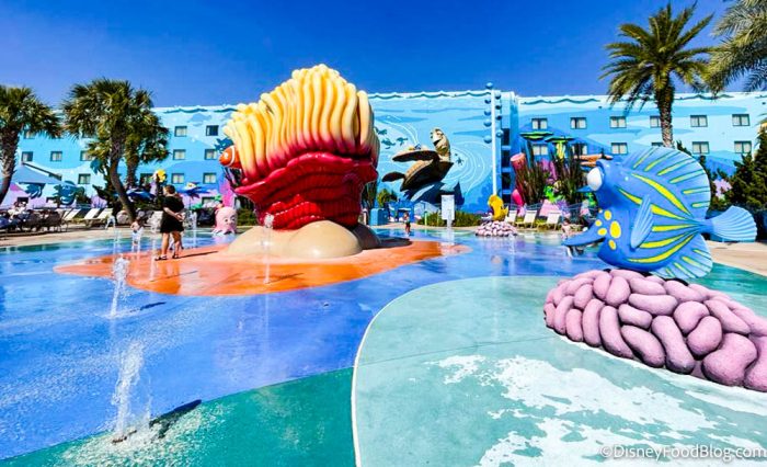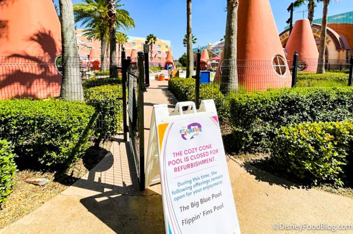 While the Cozy Cone Pool is closed, the Flippin’ Fins Pool and Big Blue Pool are open for guests at this hotel. And the Schoolyard Splashground has also reopened and is available to guests now!
