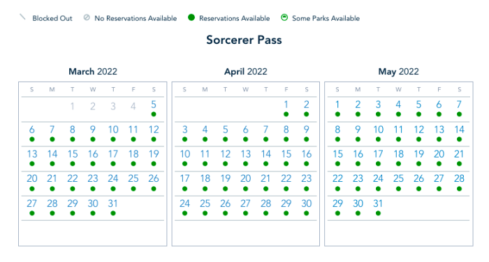 Sorcerer Pass Holders can make a reservation at any of the 4 parks every day this week!