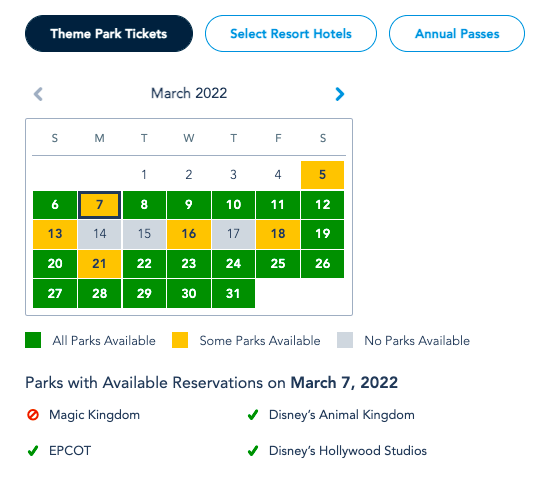 Pixie Dust Pass Holders can only make reservations on March 7th-11th this week, but all 4 parks are available.