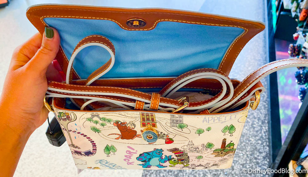 2022-wdw-dooney and bourke pixar characters collection-designer bags-epcot-creations shop-crossbody bag-inside By Sara McOmber Leave a Comment